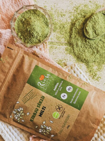 Receptūru pamatā ir saudzīgi apstrādāti ķirbju sēklu milti, tā saglabājot miltu augsto uzturvērtību. Ķirbju sēklas ir dabīgs daudzu minerālvielu (dzelzs, cinka, magnija, kālija) avots, kā arī tās ir olbaltumvielu un šķiedrvielu avots. Neskatoties uz savu augsto uzturvērtību, ķirbju sēklu milti ir bezglutēna produkts, tie nesatur „baltos miltus”, tāpēc savā uzturā var patērēt arī celiakijas slimnieki. Produkti ir pārbaudīti un testēti sertificētās laboratorijās Latvijā un Polijā. Roku darbs.